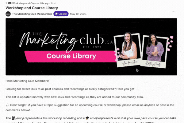 Access to Jen, Brittany, and the community to help brainstorm your content and get feedback