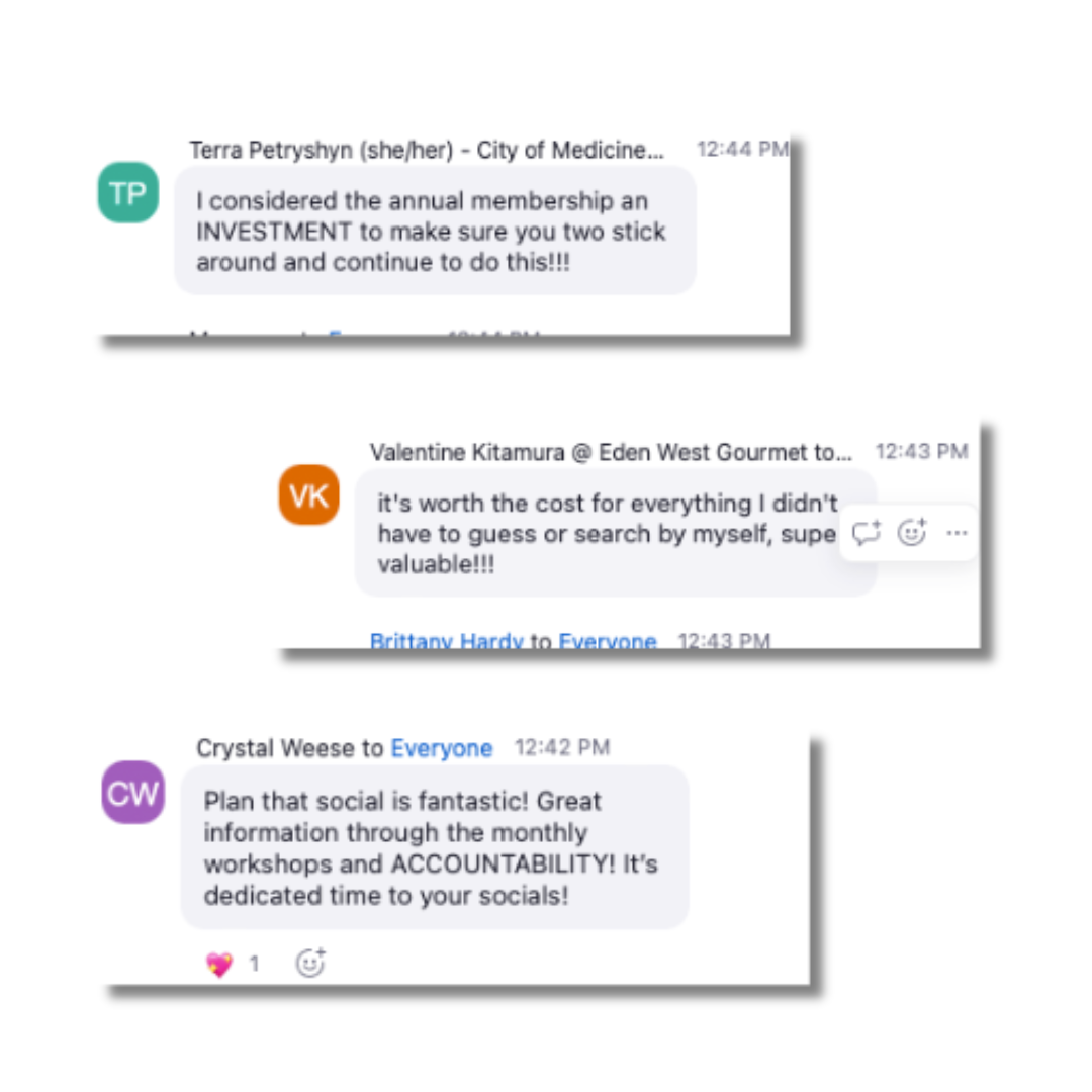 “As a small business owner and mom, I’m busy! I can’t keep up with Instagram’s constant updates, however I know how important it is to stay informed and use the platform optimally. Enter: The Marketing Club – Jen and Brittany distill down all the updates and new features, and give me tips on how best to use them for MY business, all in one fun and energizing Zoom Session. I feel more confident on Instagram because I have a whole club of awesome entrepreneurs cheering me on! "