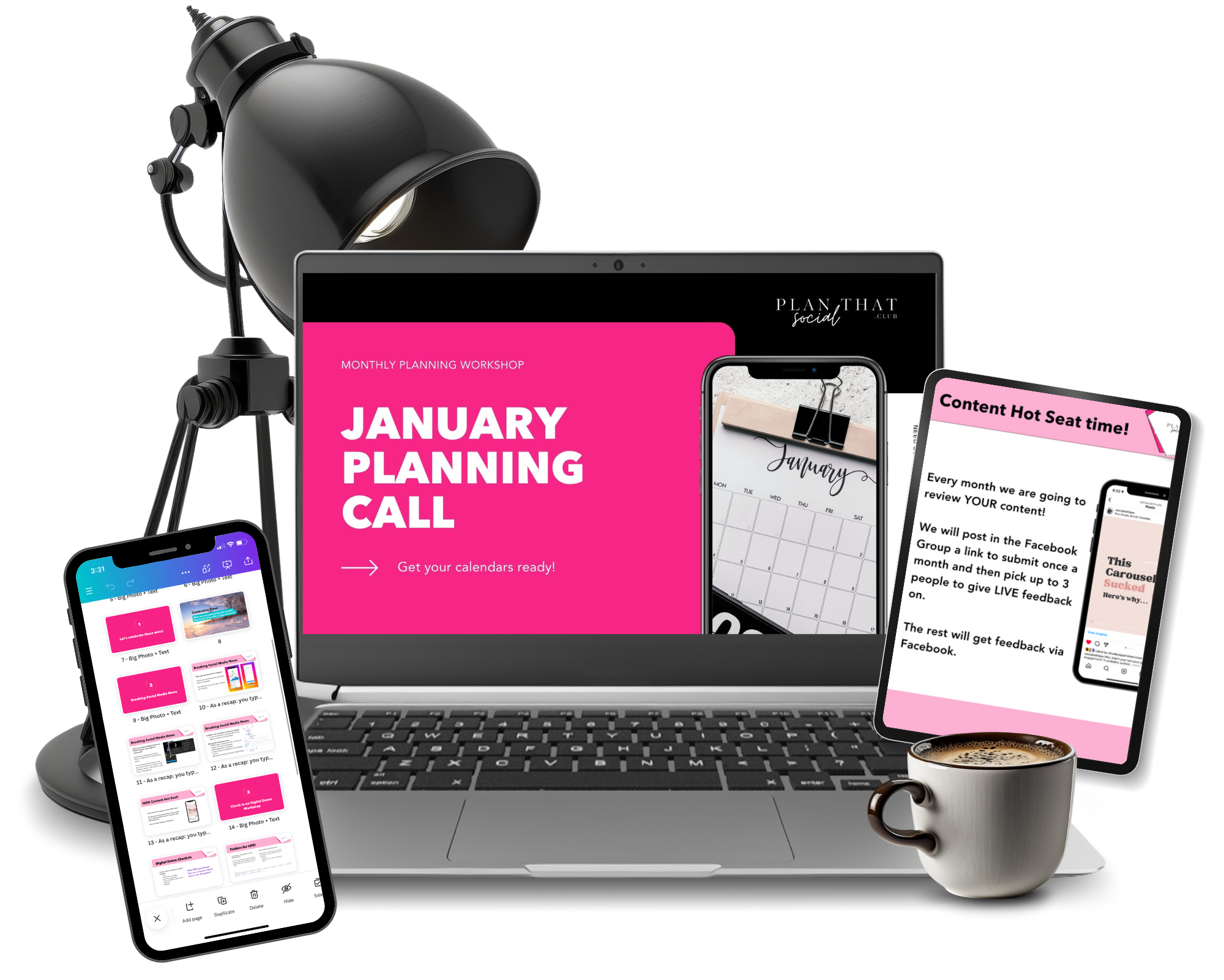 Each month we learn something new together, and we implement real actionable strategies together that you can layer in with our signature content planning party.